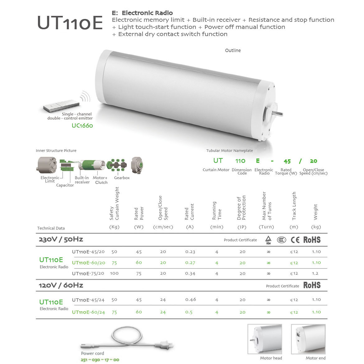 motorized curtain:Memorized Limit+Integrated Radio Control+Obstruction Detection+Light touch-start+Manual Override+The third limit position+Compatible with dry contact switch function.