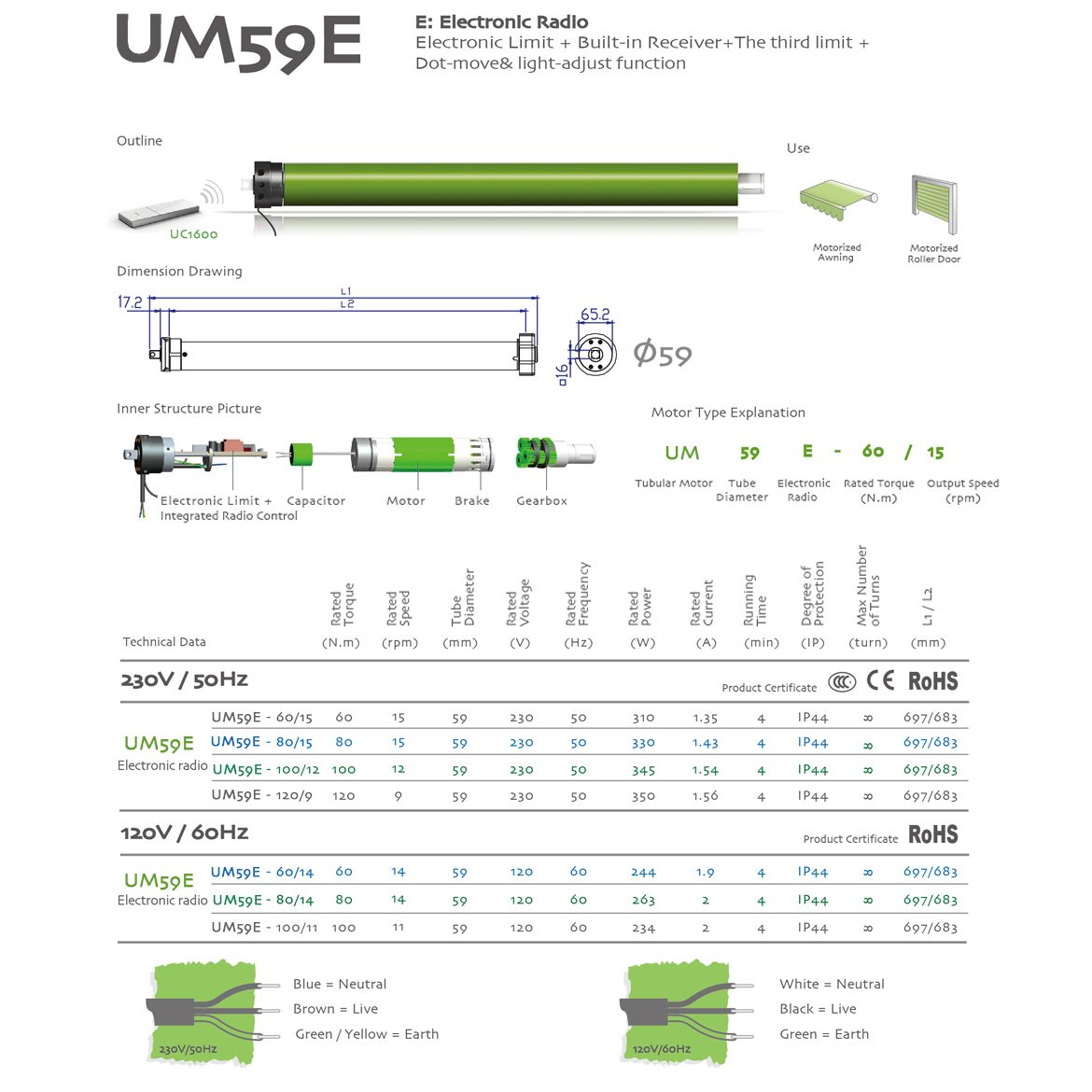 motorized roller blinds:E:Electronic Radio/Electronic Limit+Integrated radio control+jogging & tilt+The third limit